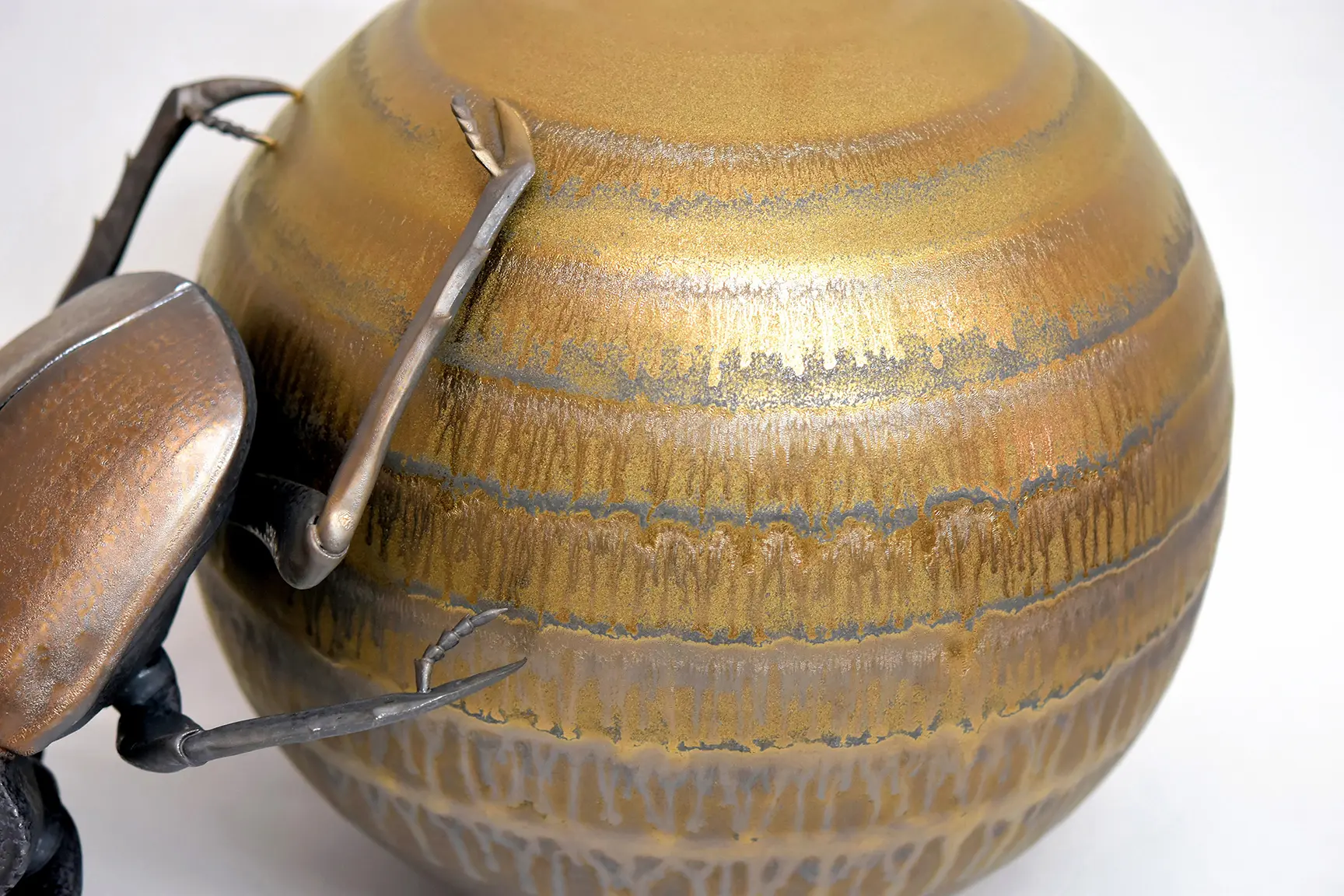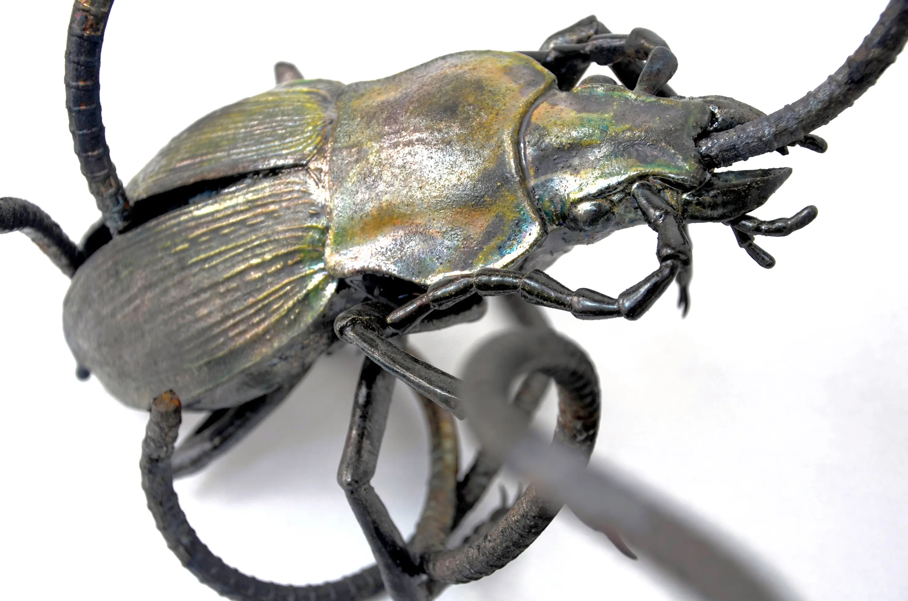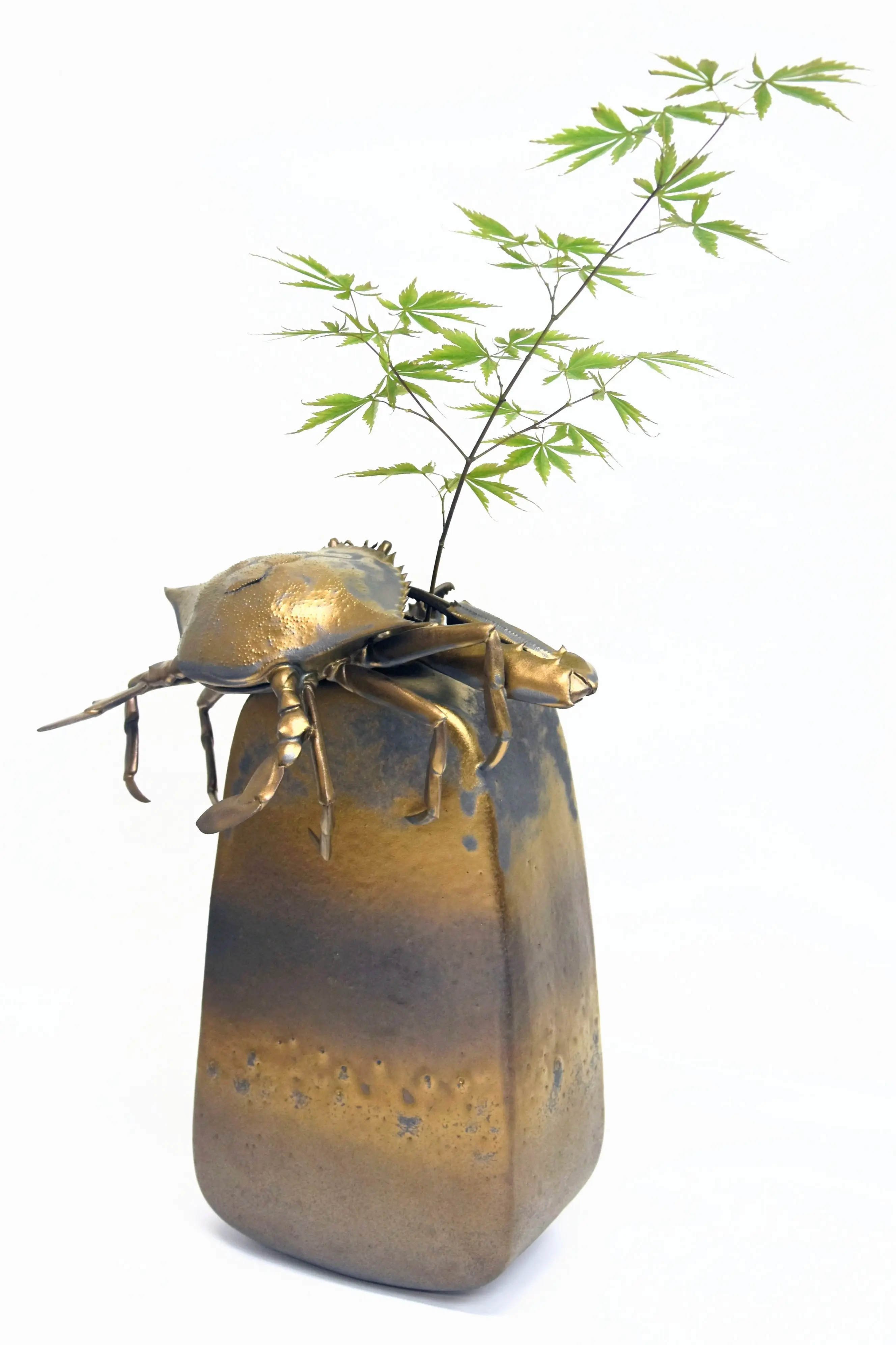 オサムシタケ~冬虫夏草~no.3 Cordyceps 3陶、鉄 Cray & Iron BarsW385×D335×H416㎜