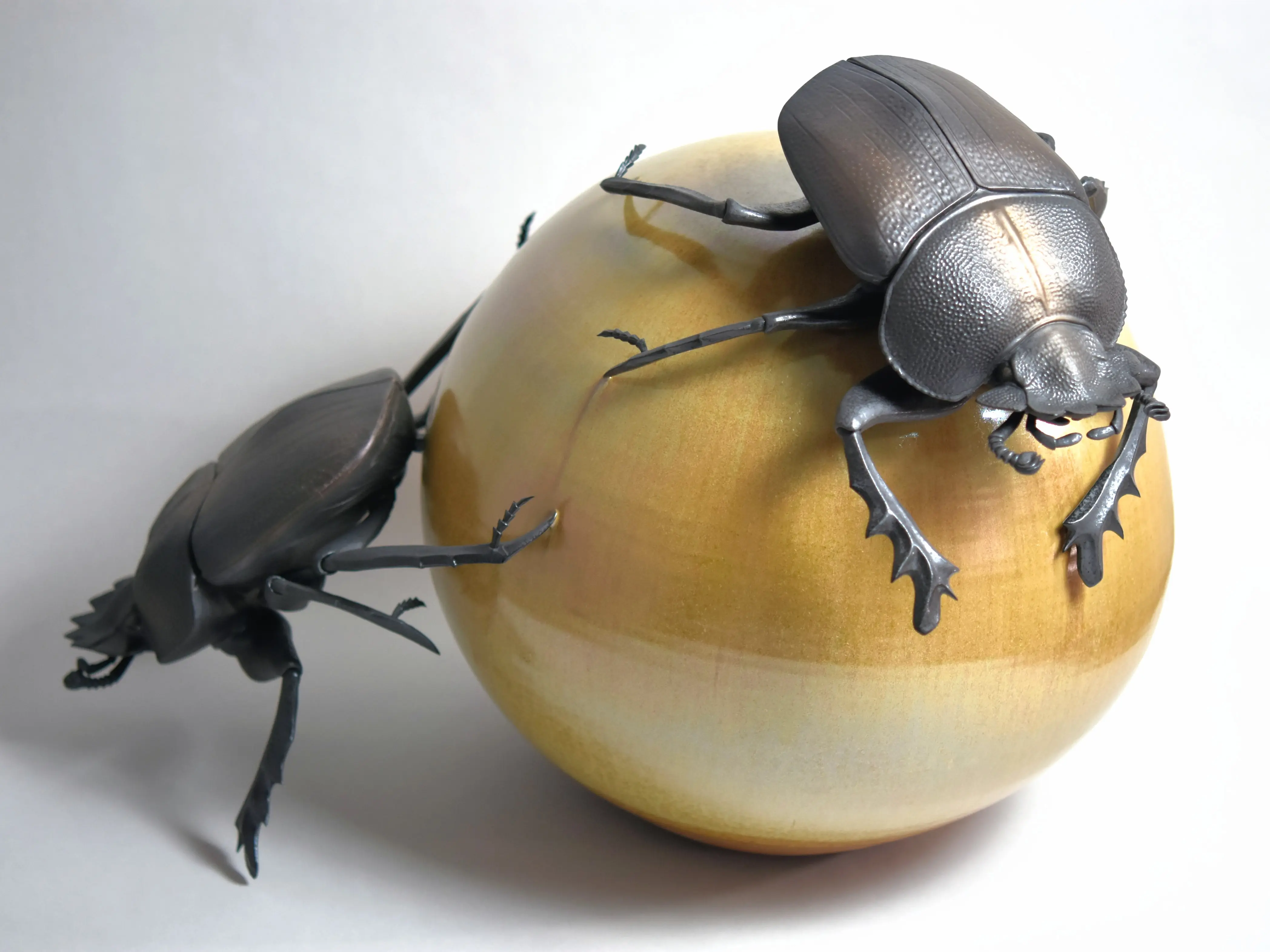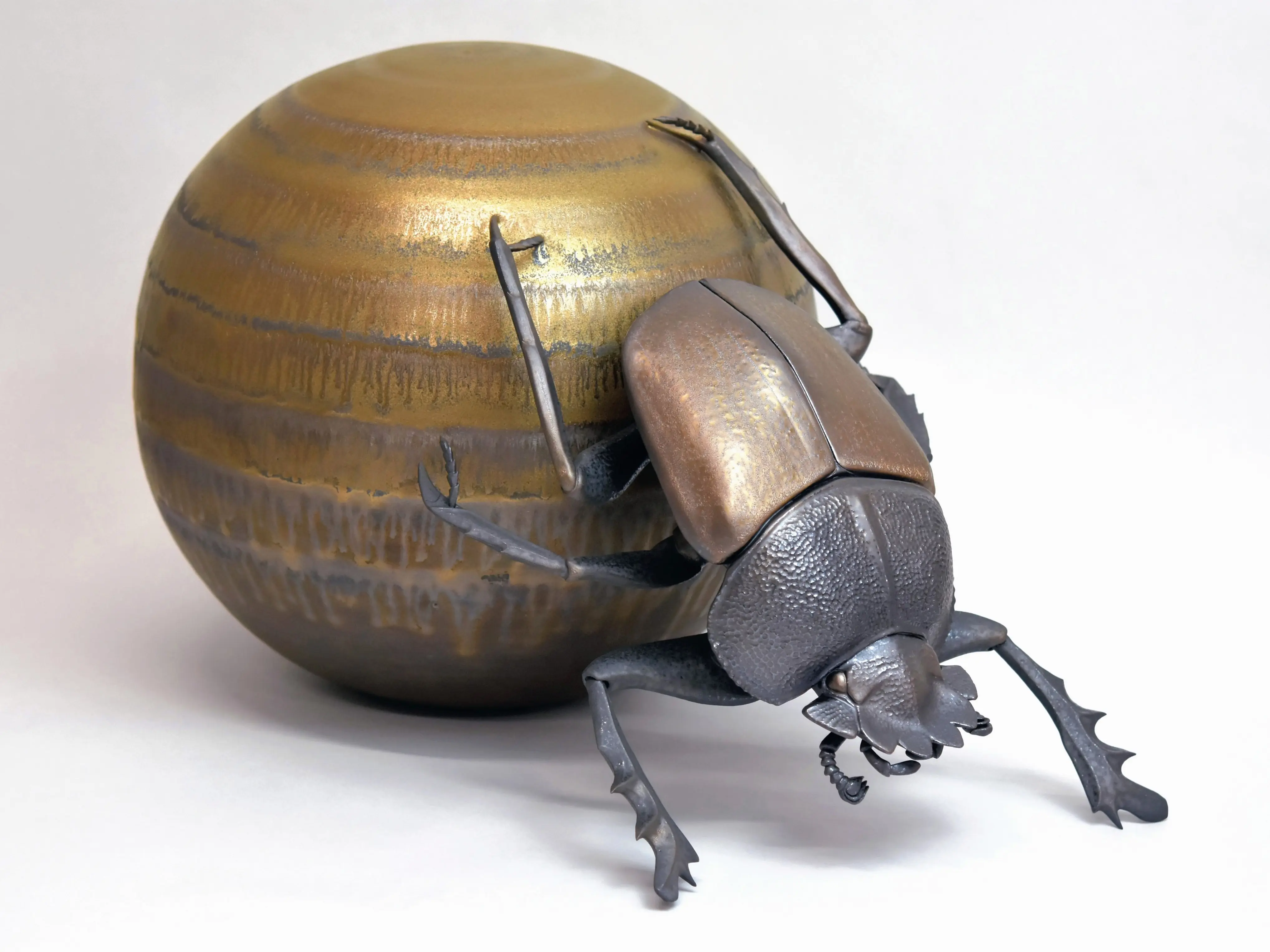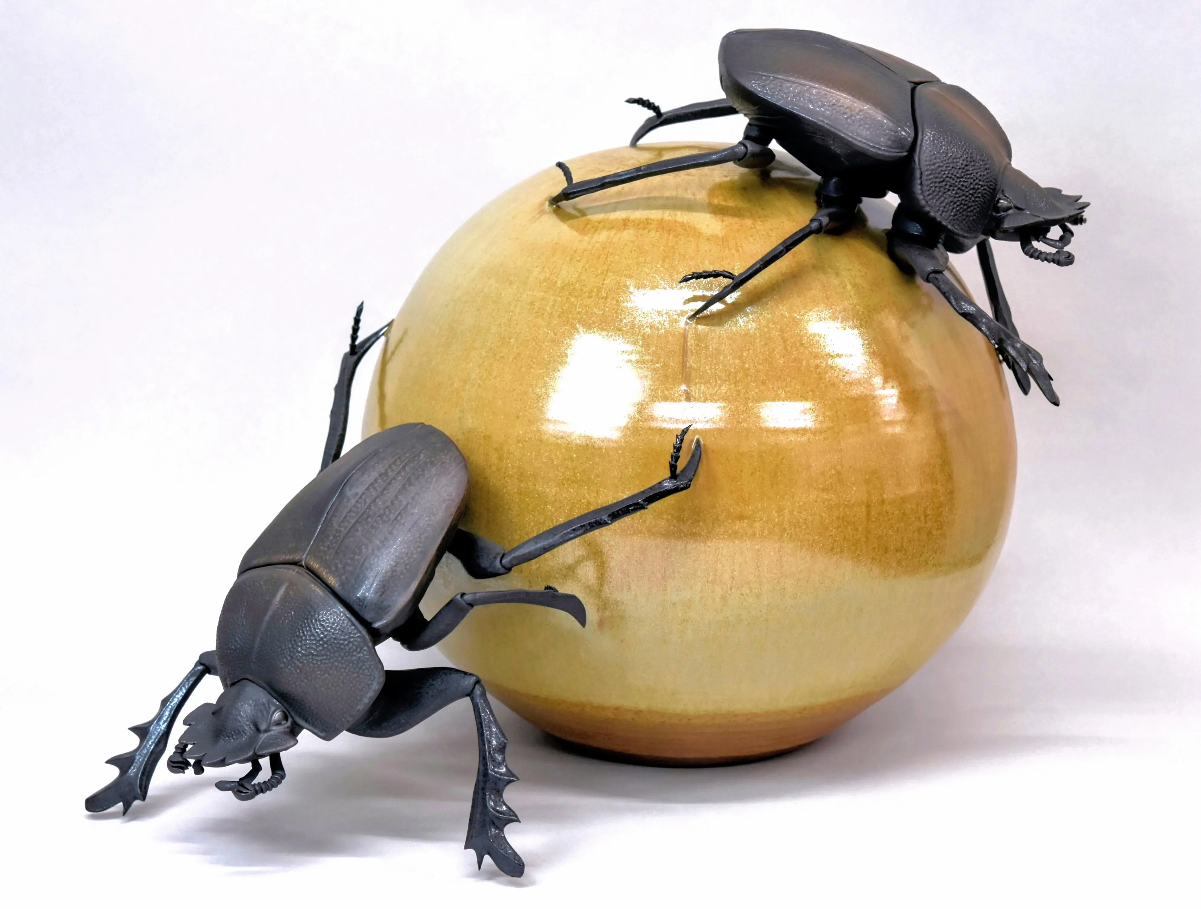 オサムシタケ~冬虫夏草~no.3 Cordyceps 3陶、鉄 Cray & Iron BarsW385×D335×H416㎜